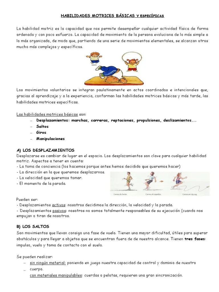 Por eso, estos juegos promueven la solidaridad, la cooperación, el trabajo en equipo, la confianza en el otro, por lo … Juegos de saltos y giros. Desplazamientos 6 saltos 4 giros 4 tracción y empuje 2 coordinación oculo manual 5 coordinación oculo pédica 4 tercer trimestre el cuerpo: Una cuerda para cada uno, intentar saltar a la comba en parado y en movimiento.